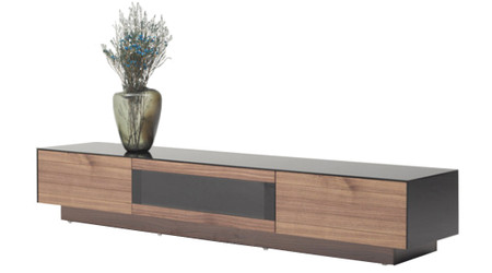 Amplify your living space with The Bruce Walnut Finish TV Stand. This contemporary designed piece is equipped with 3 drawers that contribute to its functionality while the TV Stand is finished in a walnut veneer. Electrical wire holes added for cable management.