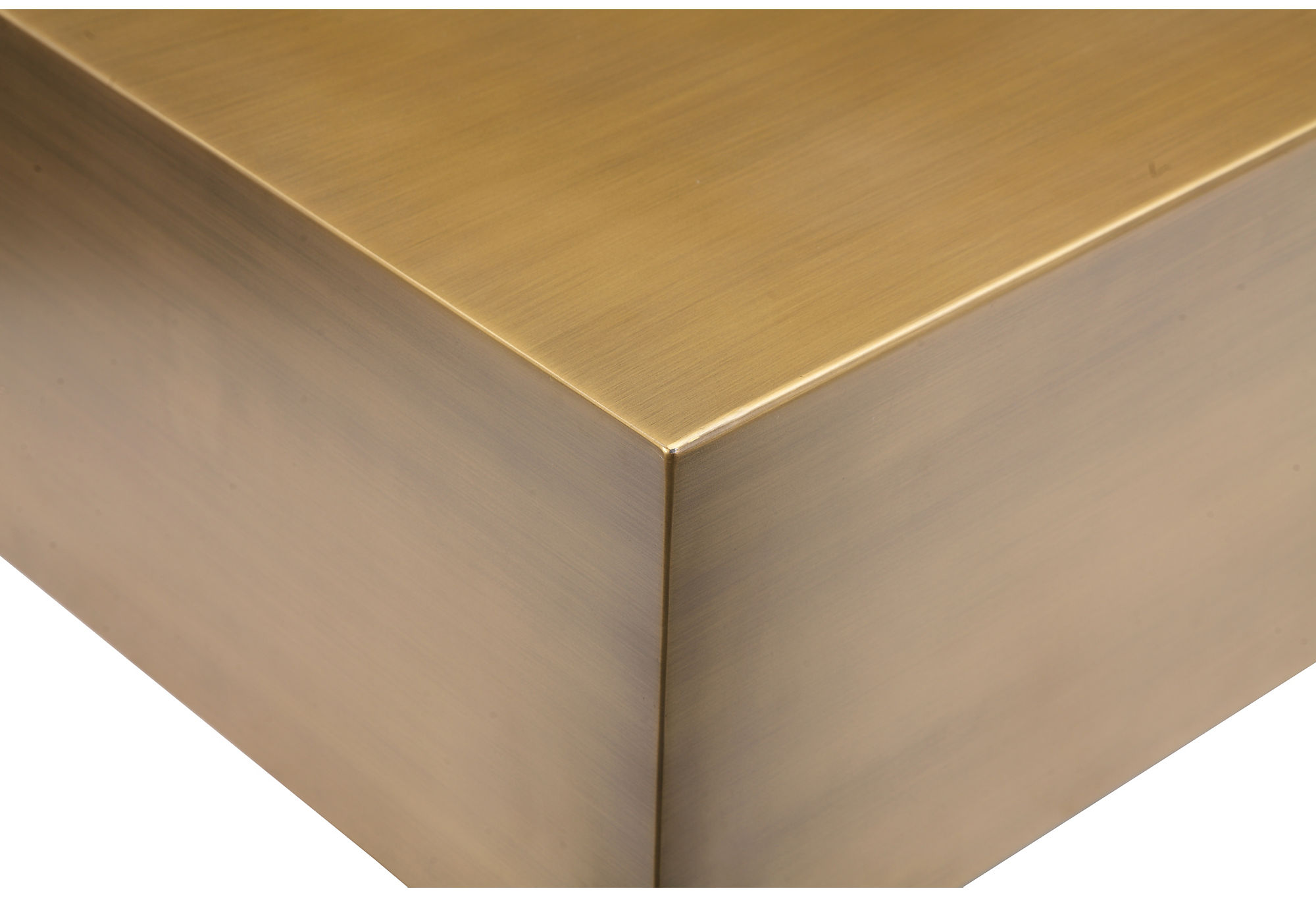 Suitable for home or office settings, Cube coffee table features a clean and simple design that makes a bold statement. Built of durable stainless steel in a brushed brass finish, the sleek, and smooth Cube table provides a generous surface area that brightens any space. We love this look and also the versatility - you can use this piece as a coffee table or a seat.