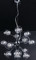 The Estelle 14 Pendant is a modern engineer marvel designed using 14 shimmery spherical shades, which bursts out like a supernova and is reminiscent of the classic Sputnik Chandelier. Each bulb is surrounded by ø 4½” glass shades with perforated steel diffusers and attached to 14 chrome steel rods, which all stem from a chrome sphere. Estelle 14 Pendant stretches up to 111½” in length and hangs from a chrome steel canopy. This modern pendant lamp includes (14) G9 pin max 40 watt bulbs.