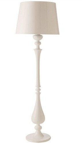 The White Lola Floor Lamp from Arteriors Home has a timeless appeal. Features a white spindle column and white patent leather shade with a metallic foil lining.