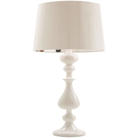 The White Lola Table Lamp from Arteriors Home has a timeless appeal. Features a white spindle column and white patent leather shade with a metallic foil lining.
