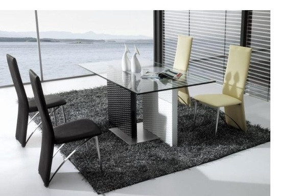 The Verga Dining Table that features a half an inch thick glass top. The glass top features two toned base. The base is made up of a black column and a white column. Each column features a lacquered finish. The Verga dining table will renovate any space.
