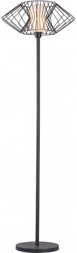 The Tumble Floor Lamp has a slim body with an architectural designed frame shade that surrounds an hourglass shaped frosted glass which encases a type A19 type bulb. The slim body, round base and lampshade to the industrial style floor lamp is finished in a rust color giving it its unique look. The Tumble Floor Lamp uses an in-line switch to turn on and off with ease and comes UL listed.